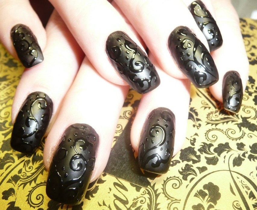 - Glossy pattern on a matte background - the top of skill and beauty. This manicure embodies elegance, royal chic and delicate taste of its owner. To bring such an idea to life is not so easy, it requires skill and skill.