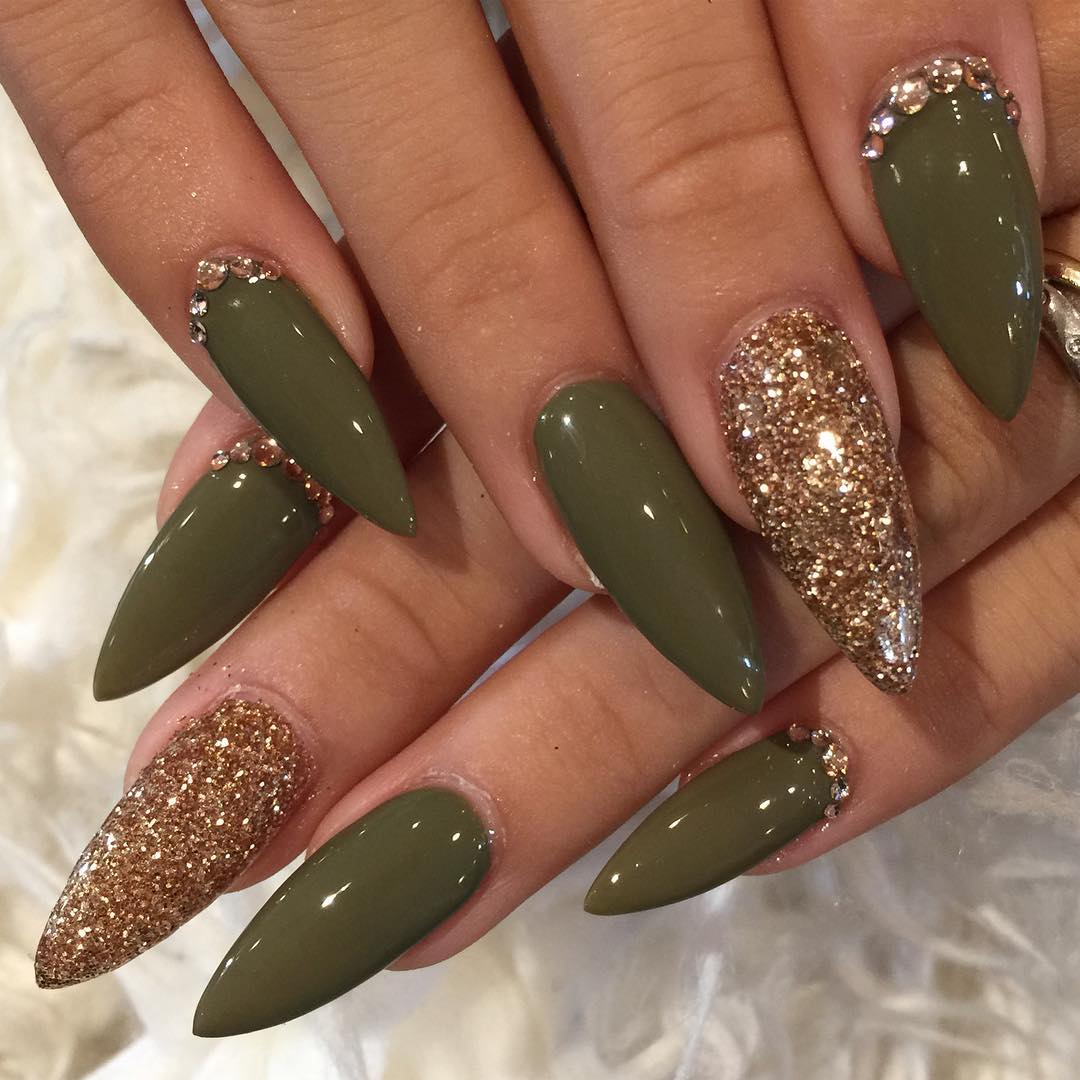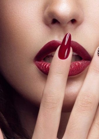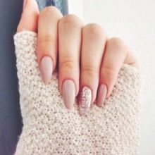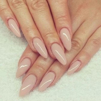 Beautiful long pointed nails fit any type of figure and fingers. The fact is that such a natural form visually lengthens the fingers, which makes the image elegant and delicate. Especially you should look at this form of ladies with plump handles. In their case, square is contraindicated, but almonds will be most welcome. At the same time, even the impressive length of the free edge will not look pretentious (as with stylets).