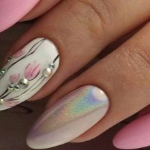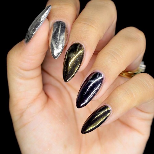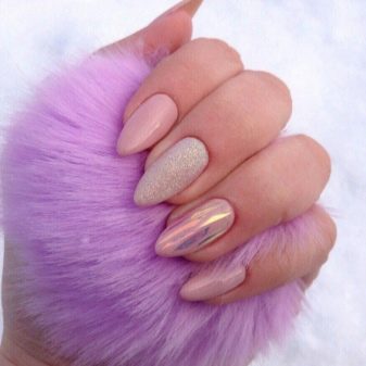 - Mirror. This option today is at the peak of popularity. Many are afraid to embody it on their own nails because of the special brightness or strict dress code at work. But here you can find a compromise. Focus only on one of the fingers. So, you will give the manicure originality, but keep it calm overall look. In this case, it is important to choose the right companion lacquer, which will be on the rest of the nails.
