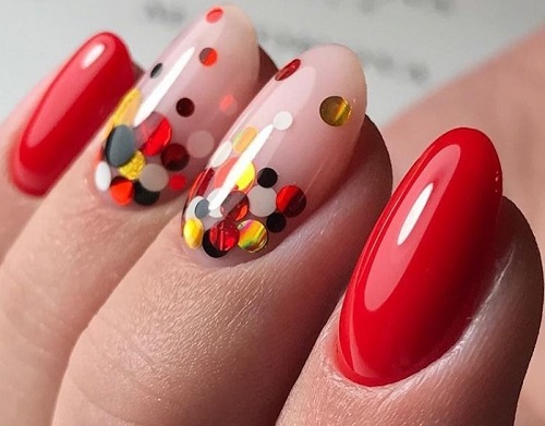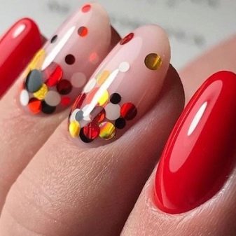 - Glitter. They can be as part of the varnish itself, and applied separately. In the latter case, you are free to choose exactly which part of the nail and in what quantities they will be located on your nail. With their help, you can make an unusual jacket, and even a gradient. At the same time, brilliant tips will invariably attract attention and please their owner.