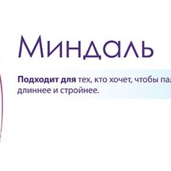 Almond-shaped nail can be obtained in several ways. (like the others). If your nails grow poorly, exfoliate and break, then you can resort to building. But the majority of girls choose a different way - the use of shellac with the strengthening of the nail plate. The fact is that additional protection of the nail from kinks helps to grow the desired length. The main advantage is the natural thickness and shape of the marigold itself.