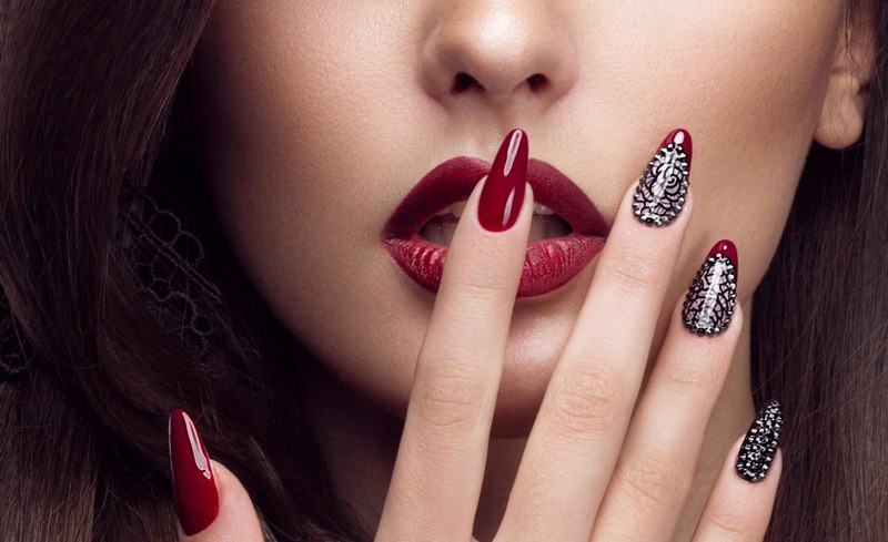 - Lace and veil. What could be more tender and feminine fine lace. Transferring it to your own nails, you will ensure a romantic mood and seductive image. It is rather difficult to draw thin intricacies of threads in a small area. Therefore, manufacturers have provided special films and stickers that mimic this fabric. You just need to cut and attach the element on the finger and fix it with the top. The location of the lace can be absolutely any. It can cover the entire nail or decorate only its edge.