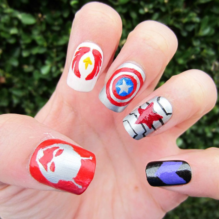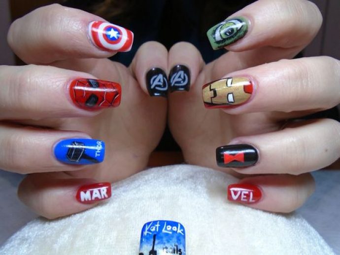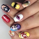 It looks very original nail design in the style of Marvel. Batman and Spiderman are already mentioned above, but a manicure depicting superheroes from the Avengers team deserves special attention. Ant-man, Thor and Hulk will look great on the nails of a modern lady, a lover of comics.