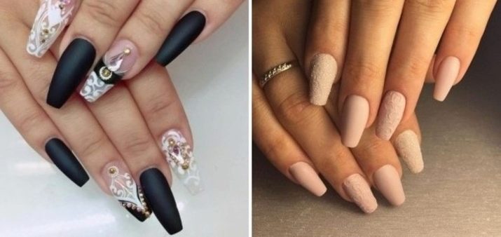 Of the many existing options, the gloss has ceased to be in demand, so the girls began to pay more attention to the matte technique. This effect can be achieved both with the help of special varnishes and gels, as well as with flock or powder.