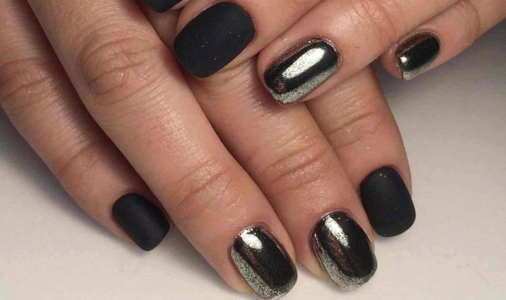 If a woman chooses a bright design, you can combine dark varnish and metallic. This style looks attractive and original. It is better to use metallic varnish for one or two nails. Others should be pale.