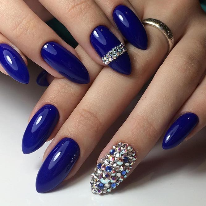 It is important to comply with the measure and not to overdo it with the decor, otherwise the fingers will not only look unfashionable, but also ridiculous, defiant. It is better to focus on one or more nail plates. Experiment with shades of stones.