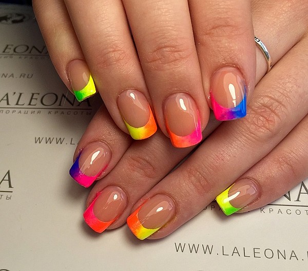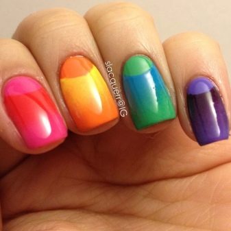 If a novice does the work, then before changing the color, it is better to dry the previous element. But then you need to paint with transparent varnish again. At the end, the topcoat is applied, and the finished manicure is placed under the lamp.