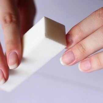 Any manicure should be started with nail treatment. First, the old coating is removed using a special liquid. Then the cuticle is removed, and the periungual pads are processed. The tip of the nail is given the desired shape, and the entire working surface is carefully polished with a buff. Dust residues must be removed from the plate before applying the substrate. It uses a cotton pad and degreaser.
