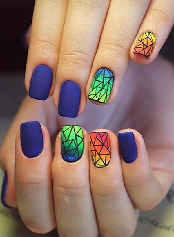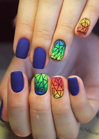 No less unique and modern is the stained glass design. When mixing a transparent base without a sticky effect and different tones of pigment, you can create on the nail a voluminous mini-stained-glass window on any subject. This approach customizes the decor, makes the design unique.