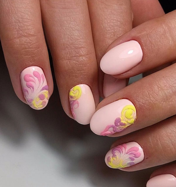 With some skills in drawing patterns with a brush, it is easy to create a three-dimensional drawing. Pigment can be used to highlight the glow of one of the tones, the depth of color or transitions between shades. This decor will help to show their individuality.
