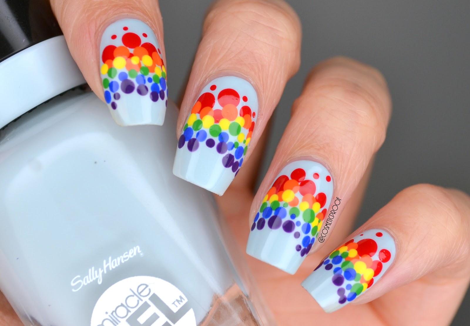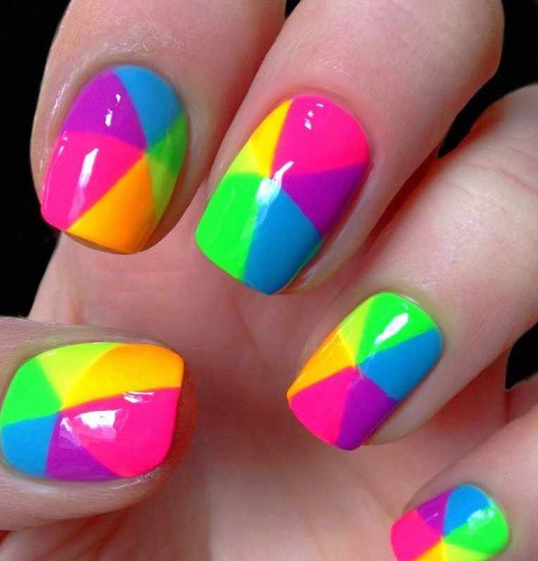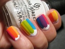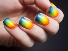 There are many advantages of this design: it is uplifting, unique, can be made in any colors. Nevertheless, there are also disadvantages: it is not so easy to make a rainbow manicure at home, besides, you will need perfect nails.