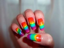How to make a rainbow manicure, see the next video.