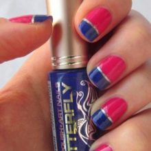 In addition to the classic rainbow manicure, you can combine two colors on each nail, for this it is important to choose colors that complement each other. They are applied from thumb to little finger. It can be red and yellow-orange, orange and yellow-green, yellow and green-blue, green and blue-violet, blue and violet. On the second hand should the same combination.