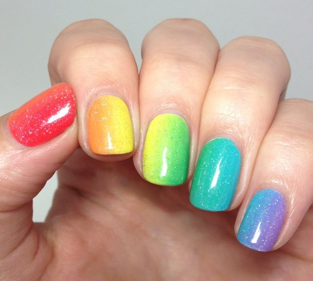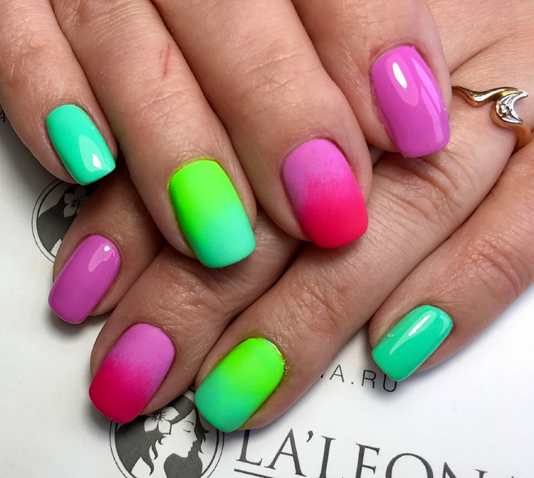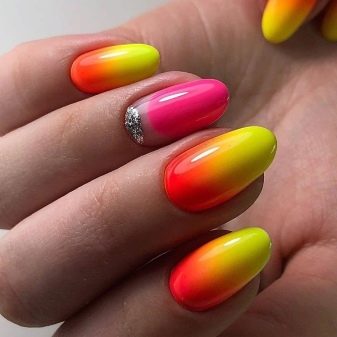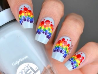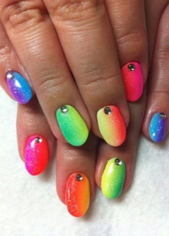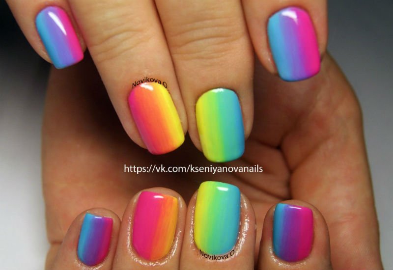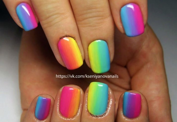 Rainbow manicure is divided into many subspecies, and gives almost complete freedom of action "artist", because everyone can draw everything that he likes. In addition, any kind is peculiar, and fits different images. Regardless of your tastes, you can easily choose the right kind of rainbow design for yourself, and it will perfectly complement your style and image.