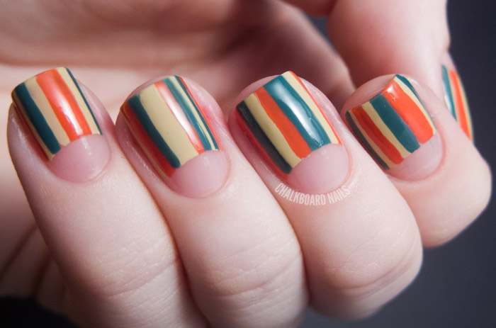 Rainbow jacket or manicure with rainbow duct tape - a real hit of the season. Technique is no different from the creation of the usual jacket. In some cases, adhesive tape can be glued on the entire nail plate.