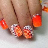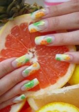 Make a manicure with citrus is not difficult, even at home. It is enough to have a fantasy, an idea of what a particular fruit and perseverance looks like. As examples, we suggest to get acquainted with several variants of citrus manicure.