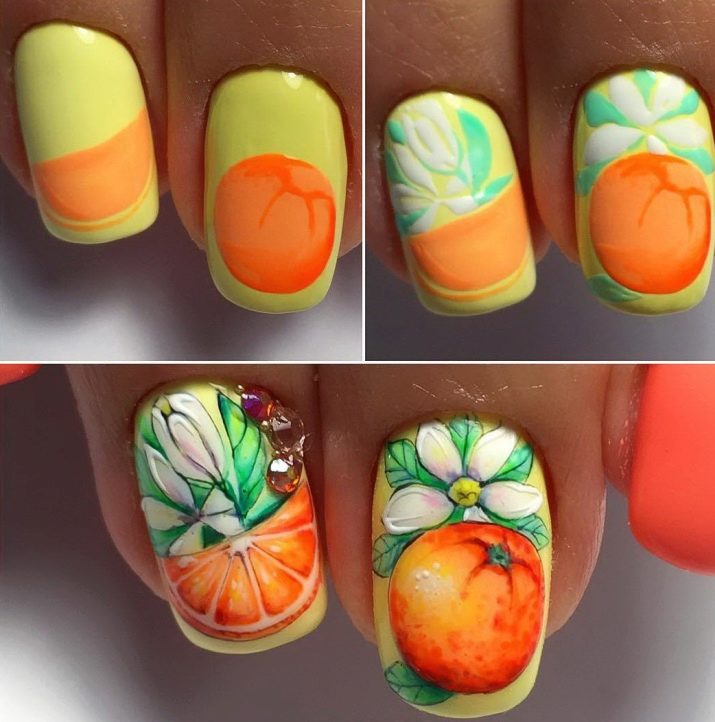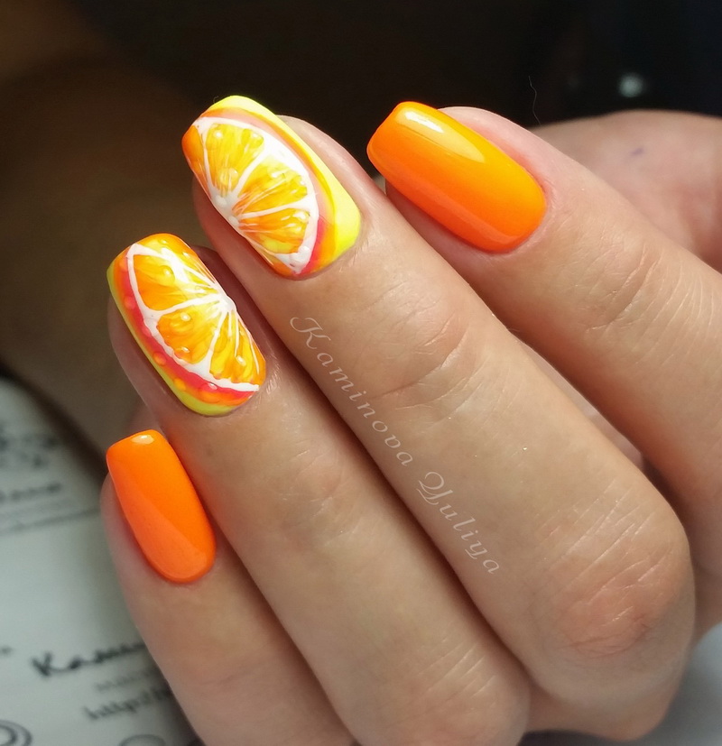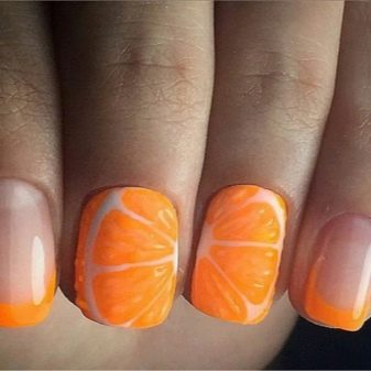 Tasty exotic citrus fruits have recently become popular in the design of manicure. There are no clear recommendations in creating a manicure with oranges or lemons, the main thing is to follow clear contours when applying such a pattern. For this, you simply need high-quality materials, special tools and practice.