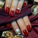 The crown on the accent nails can be white, if the main background of the manicure is a dark gel polish.For example, a white pattern on a black, black and violet or emerald base will look beautiful. This solution is especially important for short nails, because the light tones of gel polish visually reduce the already insufficient length of the nail plates. If you want to choose a bright color of design, for example, red, then you will have to choose a softer contrast so that the two companions do not compete with each other.