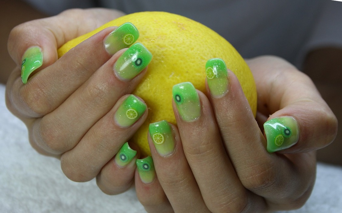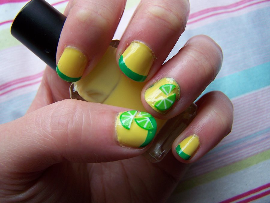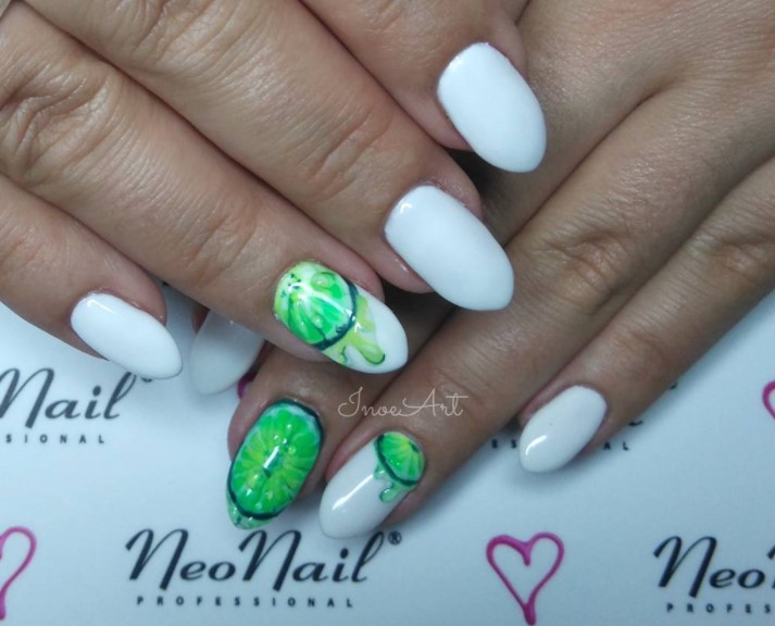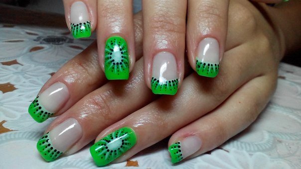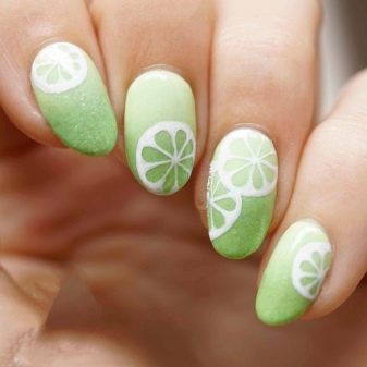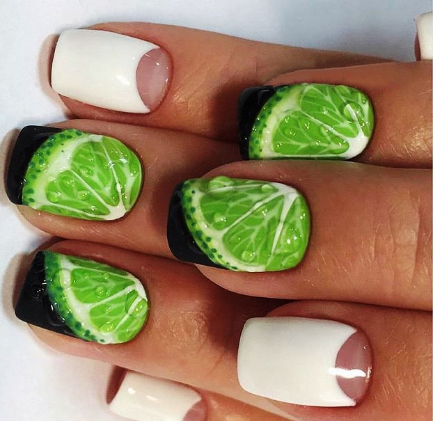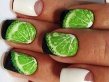To add freshness and mischief in the image, often use a print on the nails. Images of fruits can be an excellent option. Increasingly on the nails of girls and women you can see the image of lime.