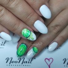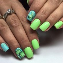 By painting lime on nails, you can make your manicure not only aesthetically pleasing, but also quite functional element of your image. If you are far from symbolism, then you should not be quick to abandon the application of this image. It can bring freshness, youth and mischief in your image.