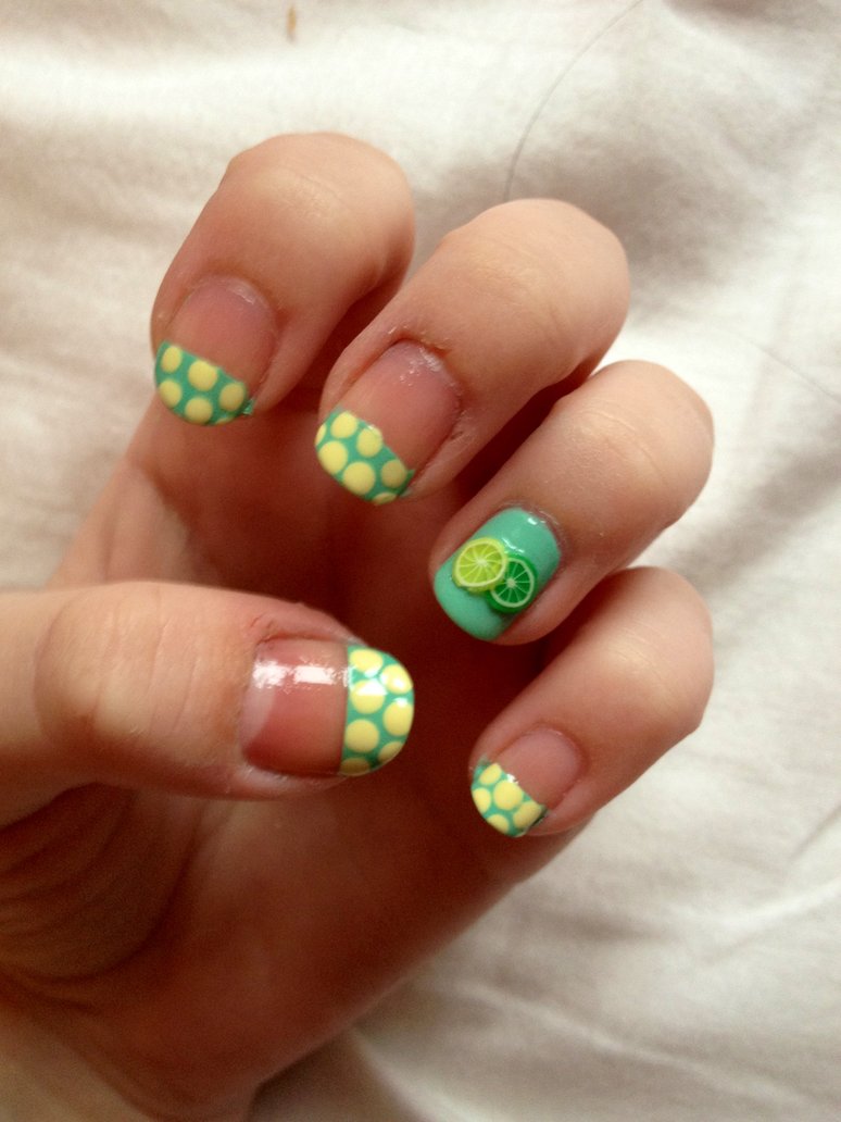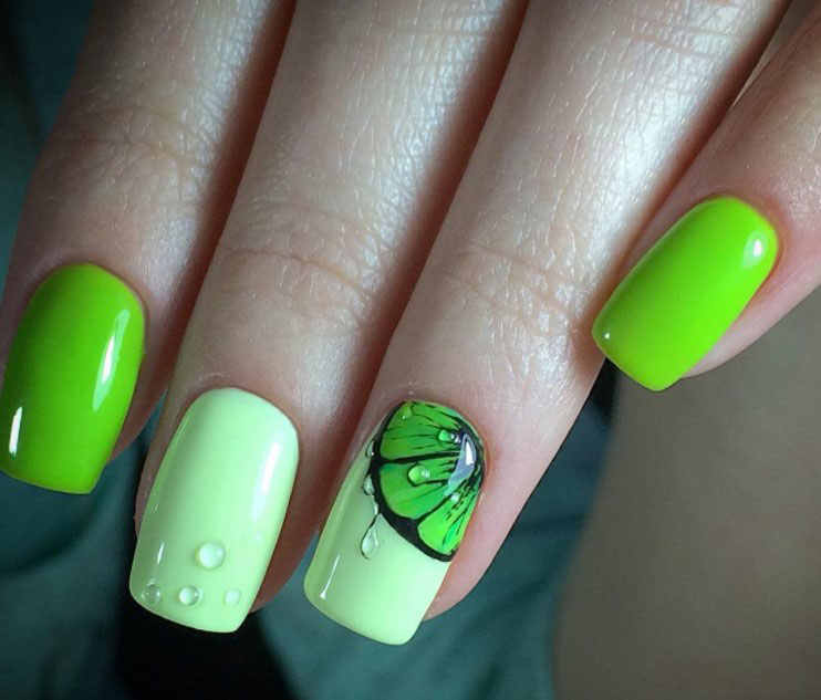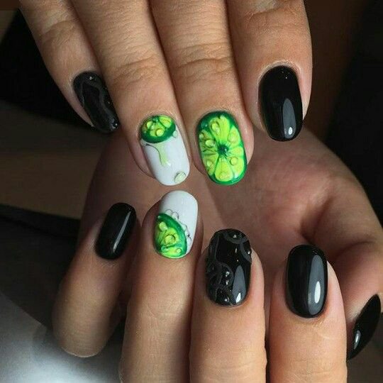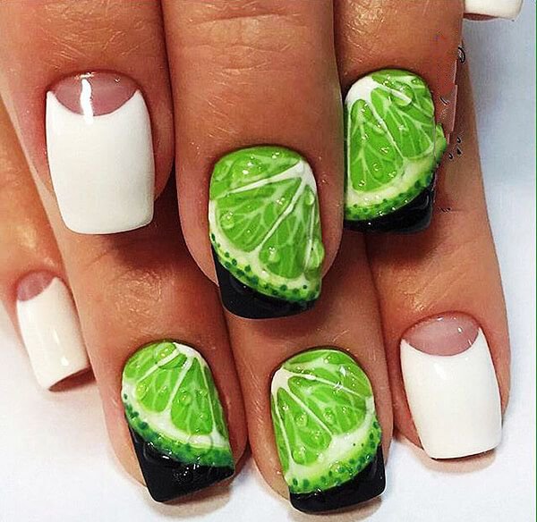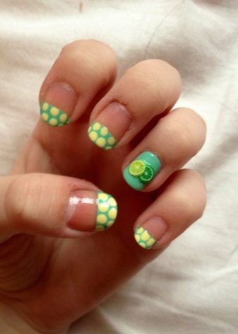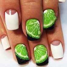 Especially this manicure will be appropriate in the summer on vacation - the lime painted on your nails will complement the fresh fruit in salads or cocktails.