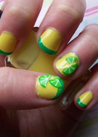 Lime itself is a fairly bright fruit, so if you use natural fruit colors in manicure, the background for it should be as simple and basic as possible.