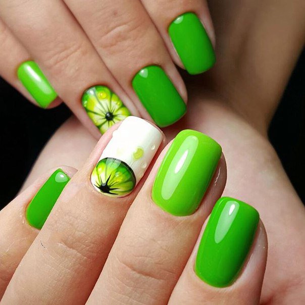 There are several ways to image lime on the nails. Consider the most popular and interesting ones.