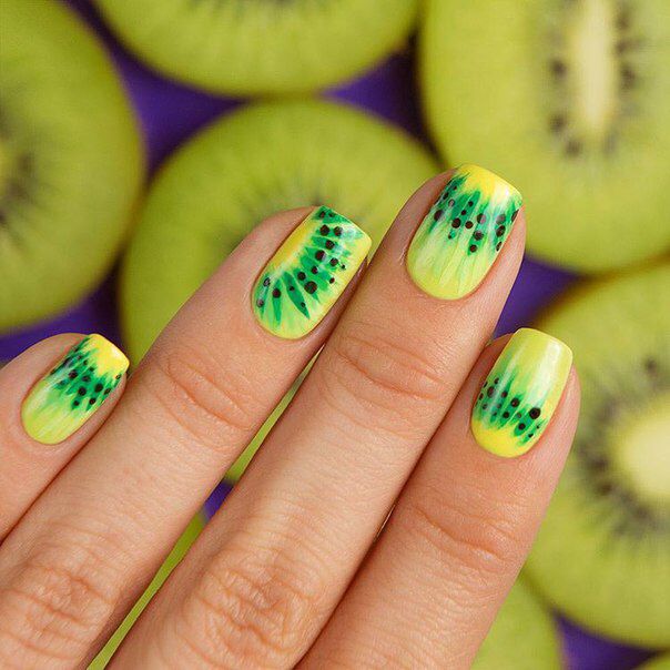 - If you do not want to depict the fruit itself, you can use only its color range. So you can get a rather extraordinary abstract nail design.