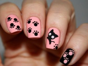 Nail design with the image of animals is quite catchy, but it does not preclude the use of various decorative elements and combinations of different manicure techniques. The following elements will precisely decorate the animal's drawing and will not make the composition overloaded: