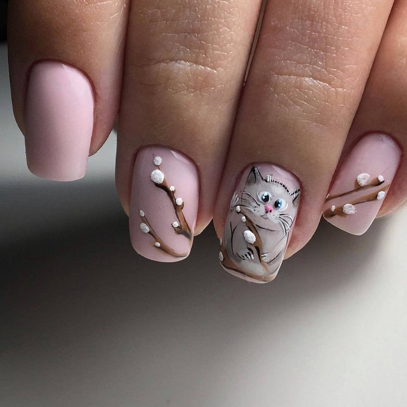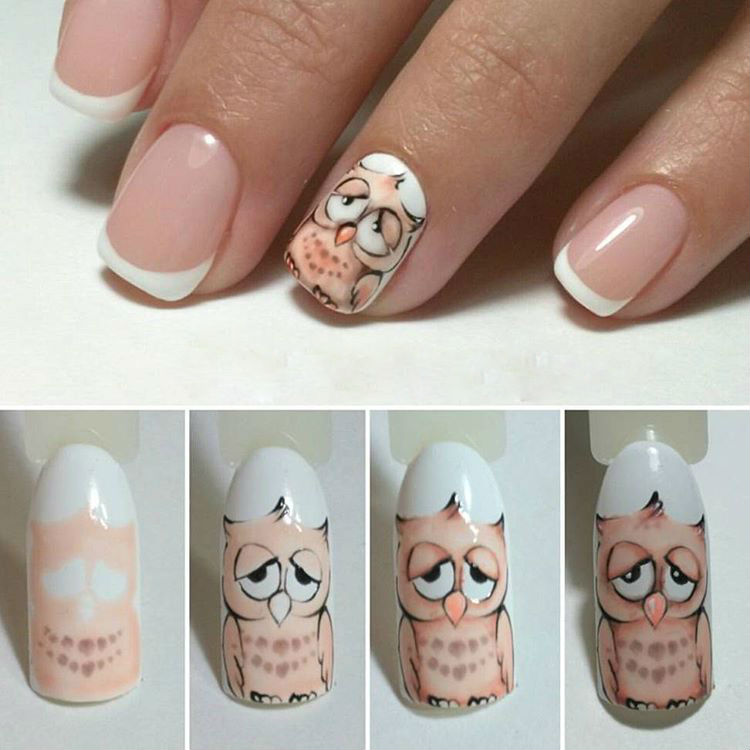 Of course, most of the fans of such nail art are young girls, however, the images of animals are quite appropriate in age design. Of course, a pink bear on a vanilla background in a manicure of a 30-year-old woman will look strange. But an elegant owl, a seagull, subtle cat traits will suit anyone. It is not necessary to draw animals on all nails, just select one or two to create the desired effect and attract attention.
