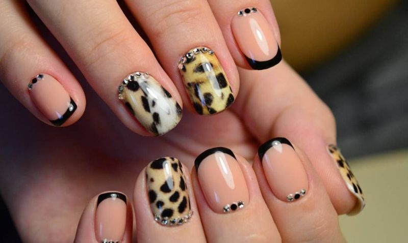 Animal print is a great solution for creating the right mood. Leopard spots, zebra stripes are much easier to make yourself, and you can add a composition with stones, rhinestones and glitter.
