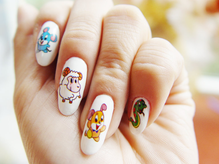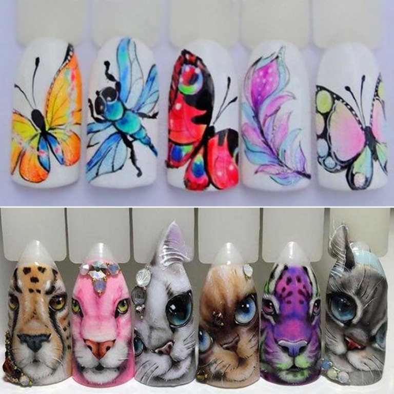 There are several ways to create a drawing of animals on the nails: hand-painted with varnishes, gels and paints, applications, decorative slides. In any case, the choice is always there and it depends on your taste and skills.