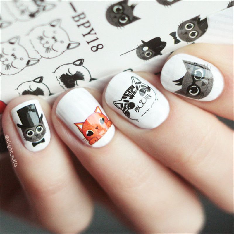 If you're a fan of minimalism, try stamping. This design looks realistic and modest. It needs stencils with the necessary types of animals and a special varnish.