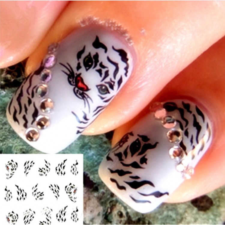 It is not necessary to draw a whole animal, just an animal motive is enough. Tiger theme is very popular this season. Red and black flashy pictures look great on a white surface.
