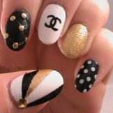 Restrained, refined, elegant, appropriate in any case - we are, of course, talking about the style of Chanel. Speaking about the manicure, the masters prefer the performance in black and white colors, and as a decor the image of that famous handbag is popular. Another option for jewelry can be gold glitter or coating with such varnish interspersed with gold particles of one nail, which will make the image much more original.