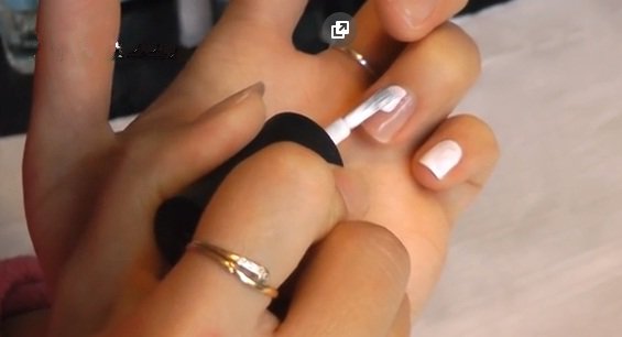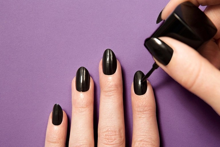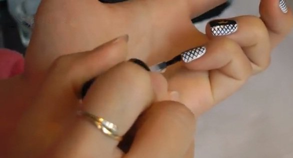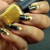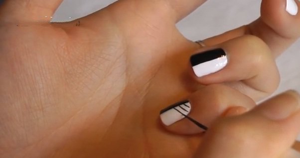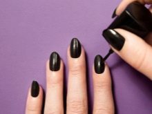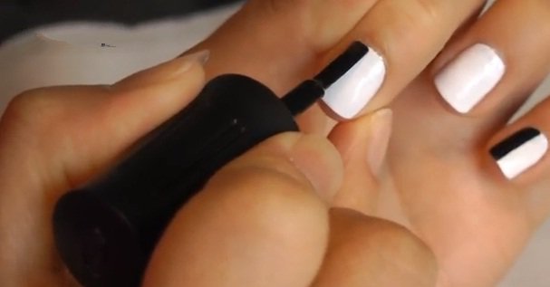 - Carefully dried, the following is applied black lacquer on half of each nail. Only unnamed fingers are stained by two thirds. If necessary, the varnish is also applied in a couple of layers, then dried.