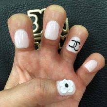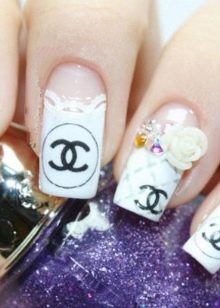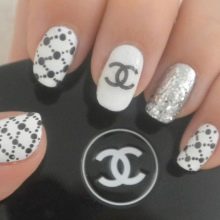 The world famous symbol is used as the main element of manicure. The logo of the house of Chanel represents two intertwined letters C, which became the embodiment of classic and elegance. Often the logo is applied to the ring finger.