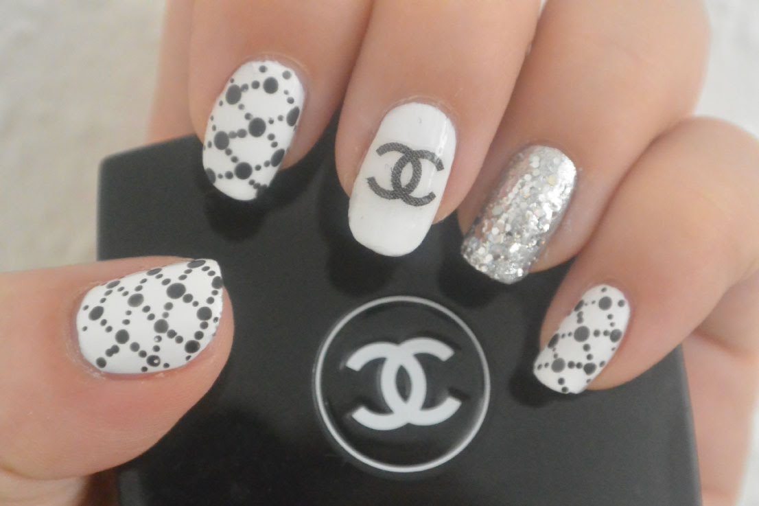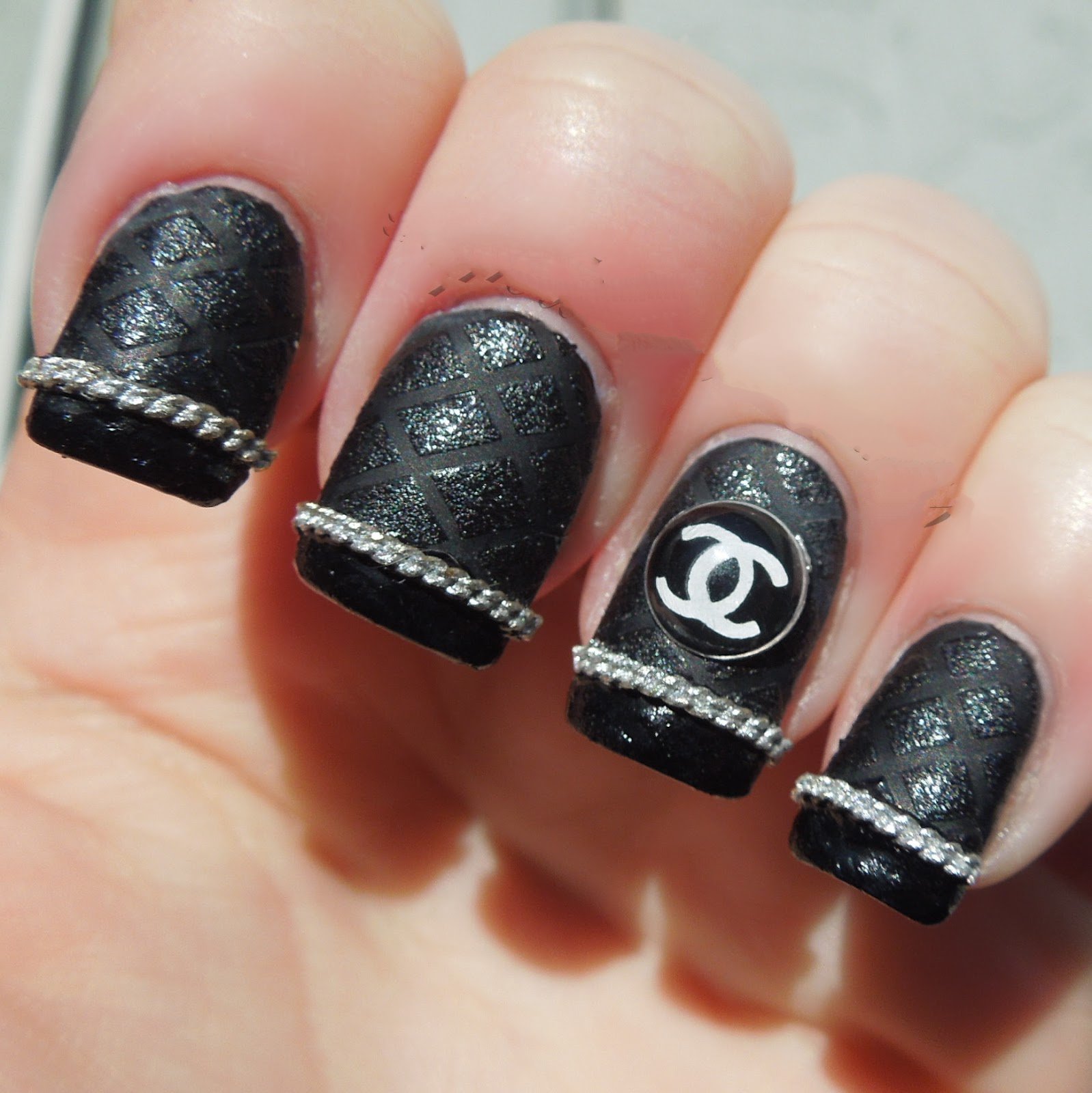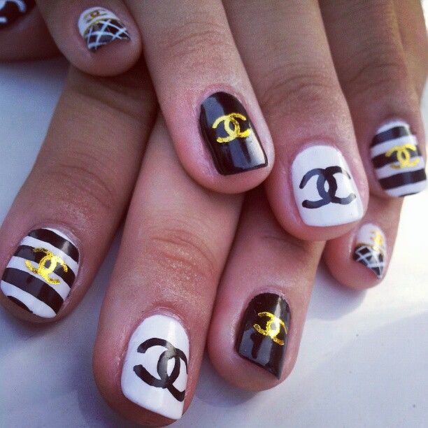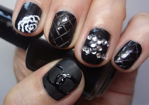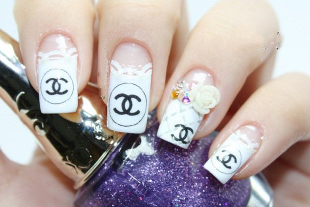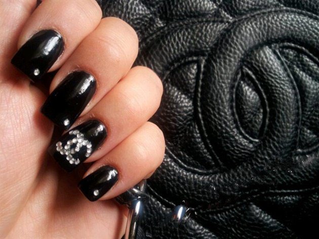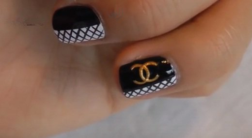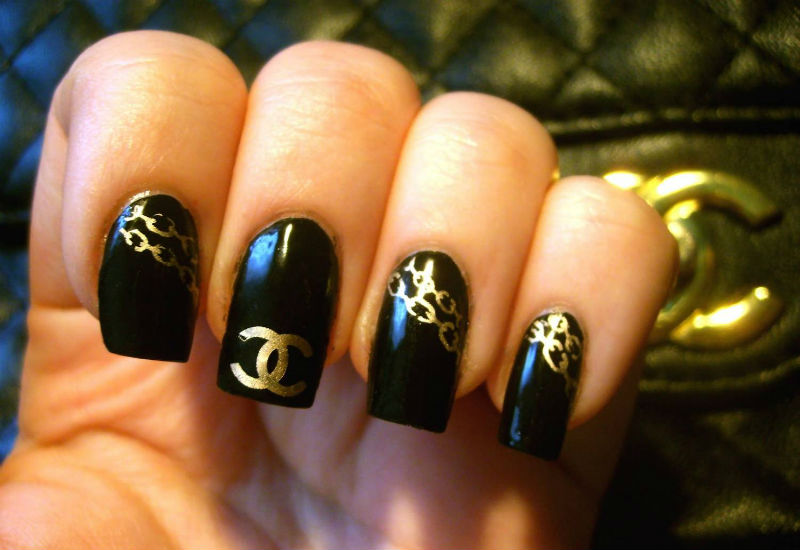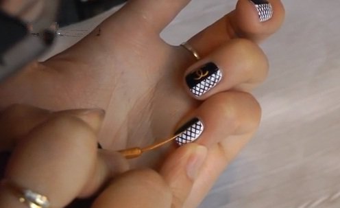- Unnamed fingers are decorated with the Chanel logo, the logo is drawn with golden lacquer.