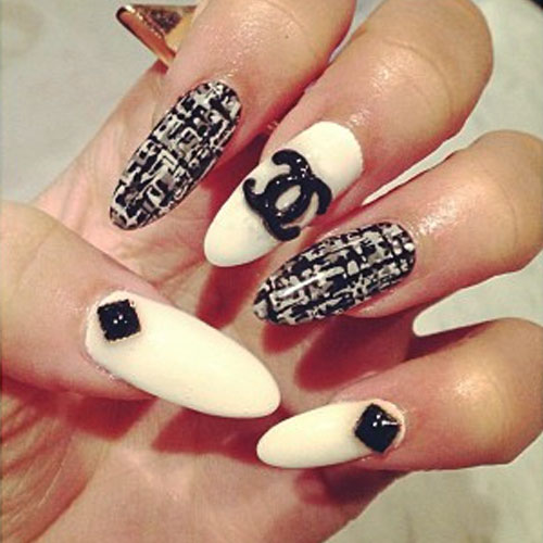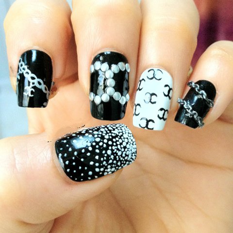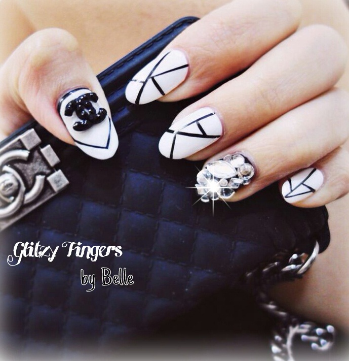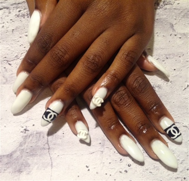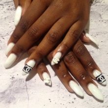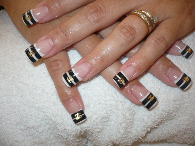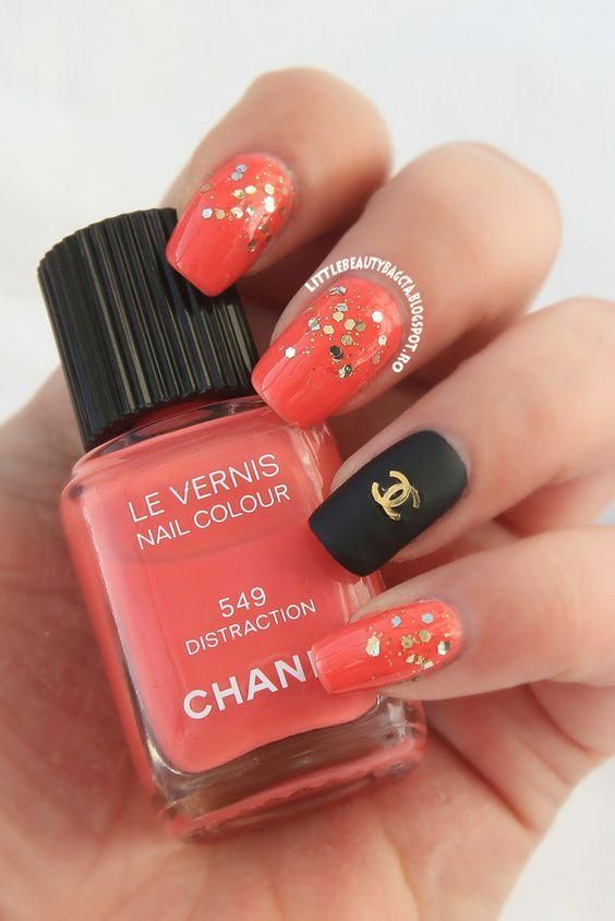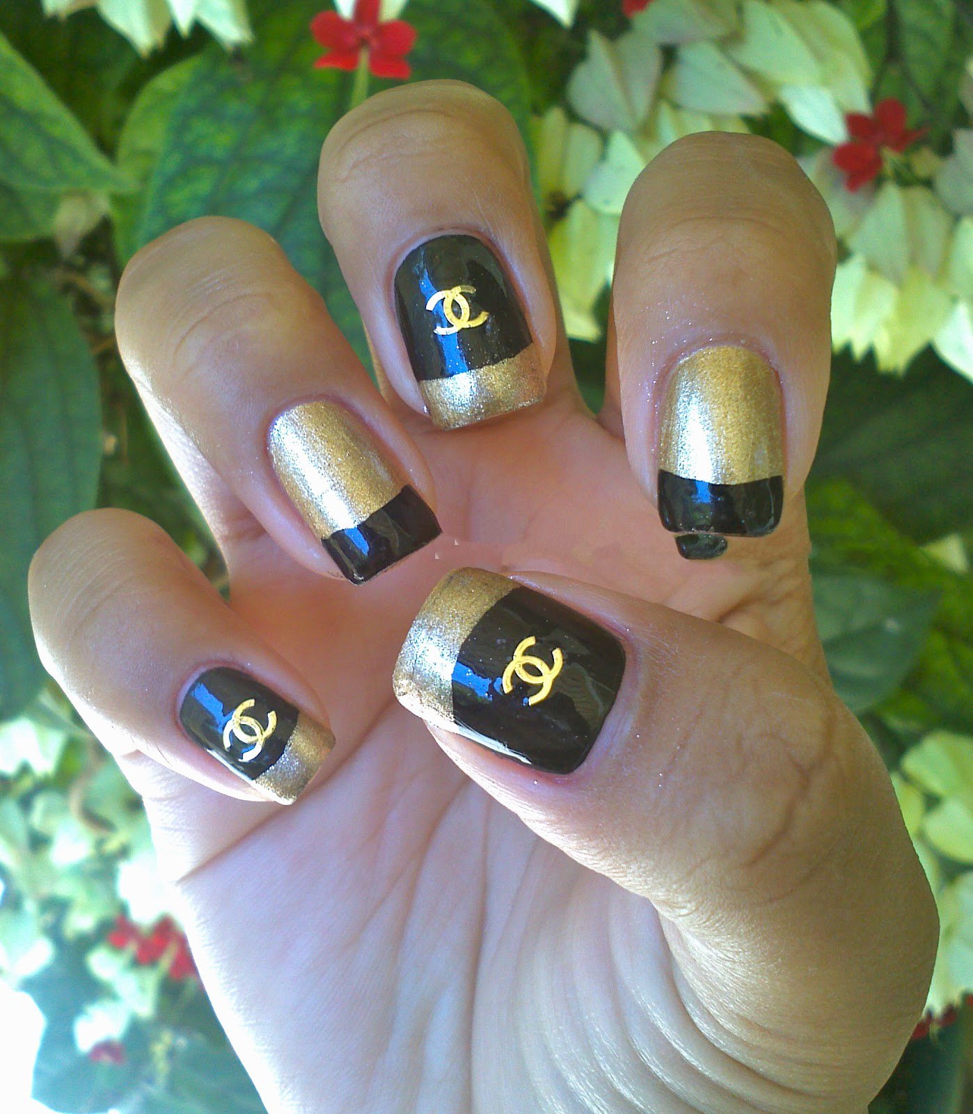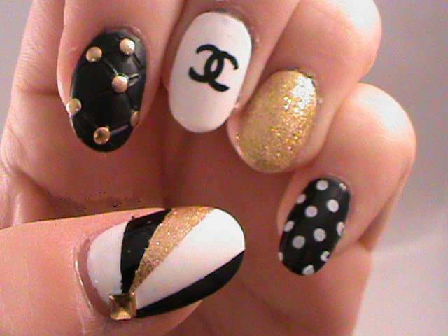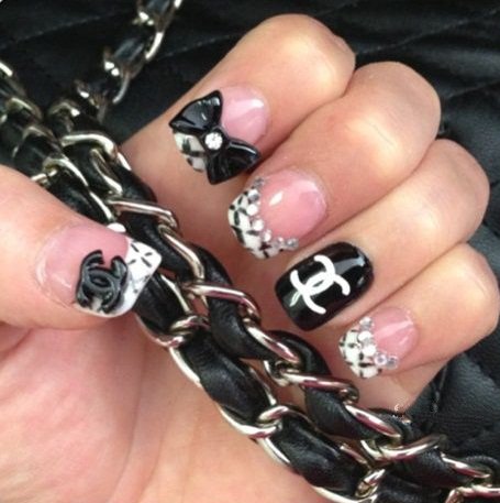 - Unnamed fingers are decorated with the Chanel logo, the logo is drawn with golden lacquer.