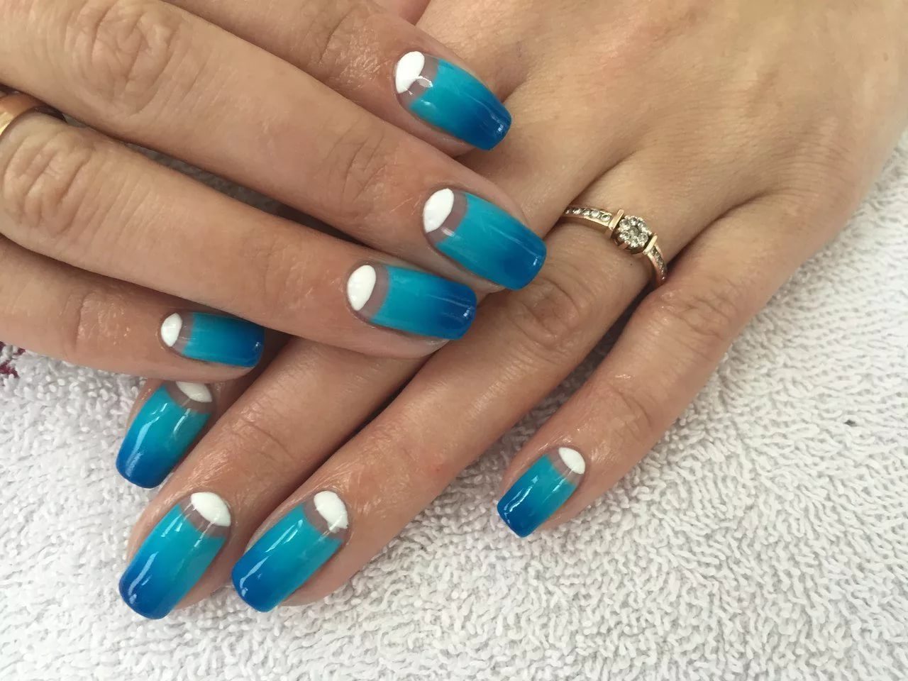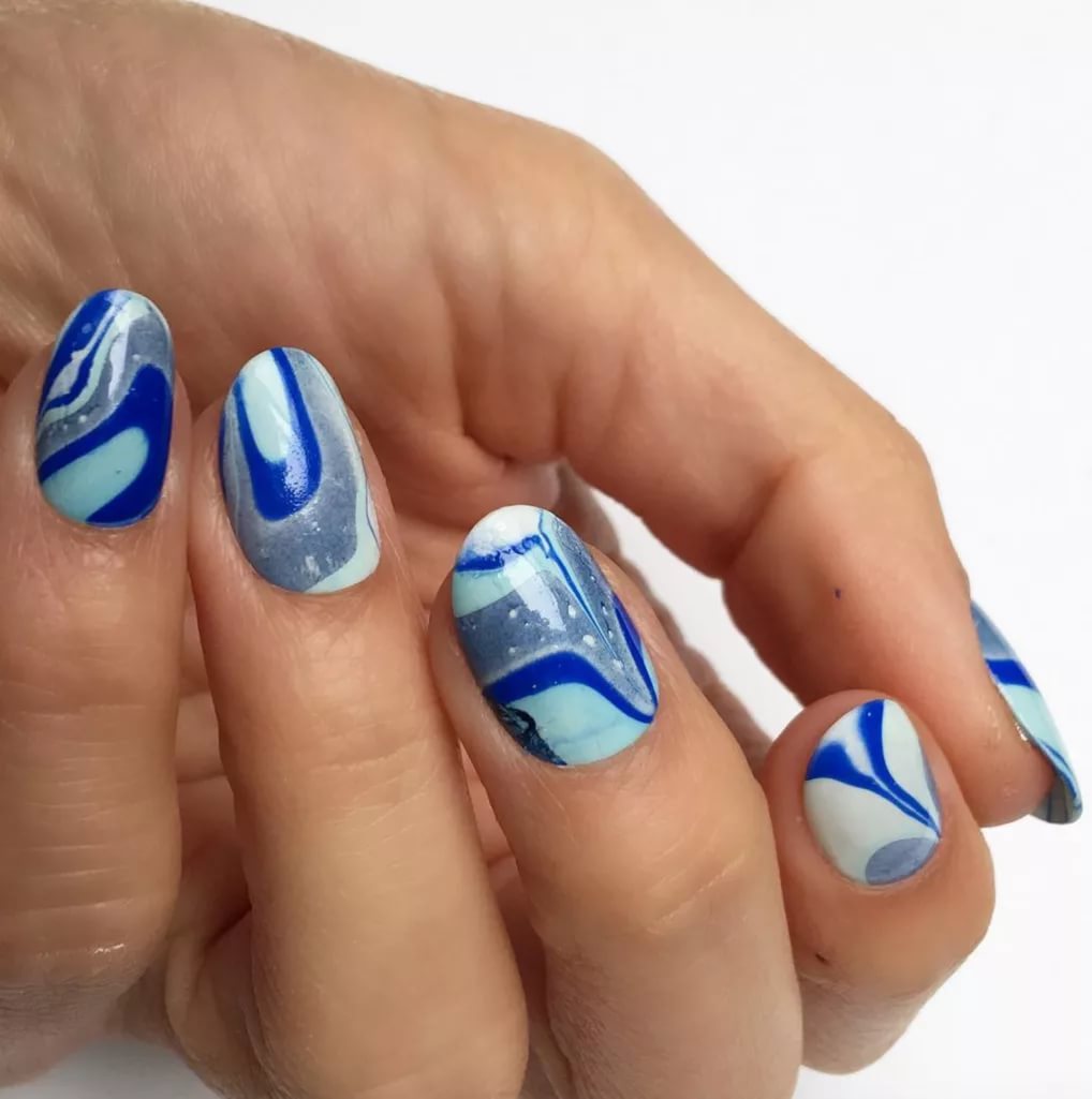 - With a blue tint, you also get a great moon manicure, which will give your overall look a little zest.