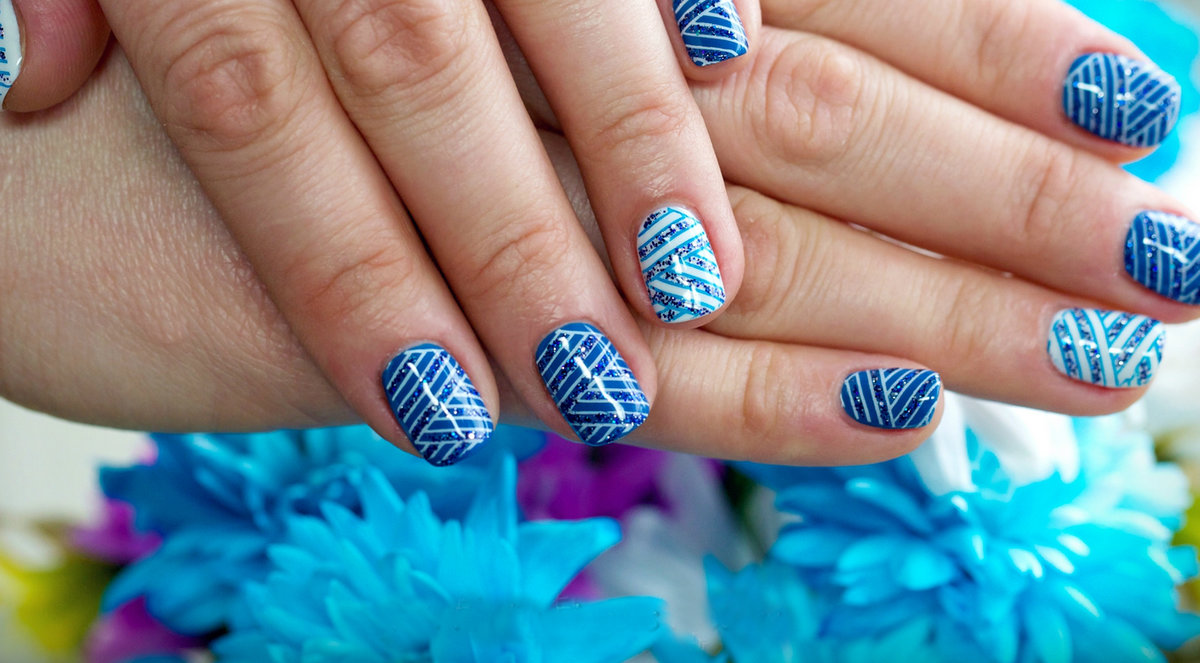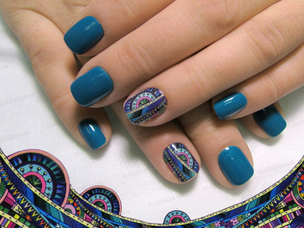 - Blue goes well with silver. With this combination, you can create an unusual ornamental manicure.