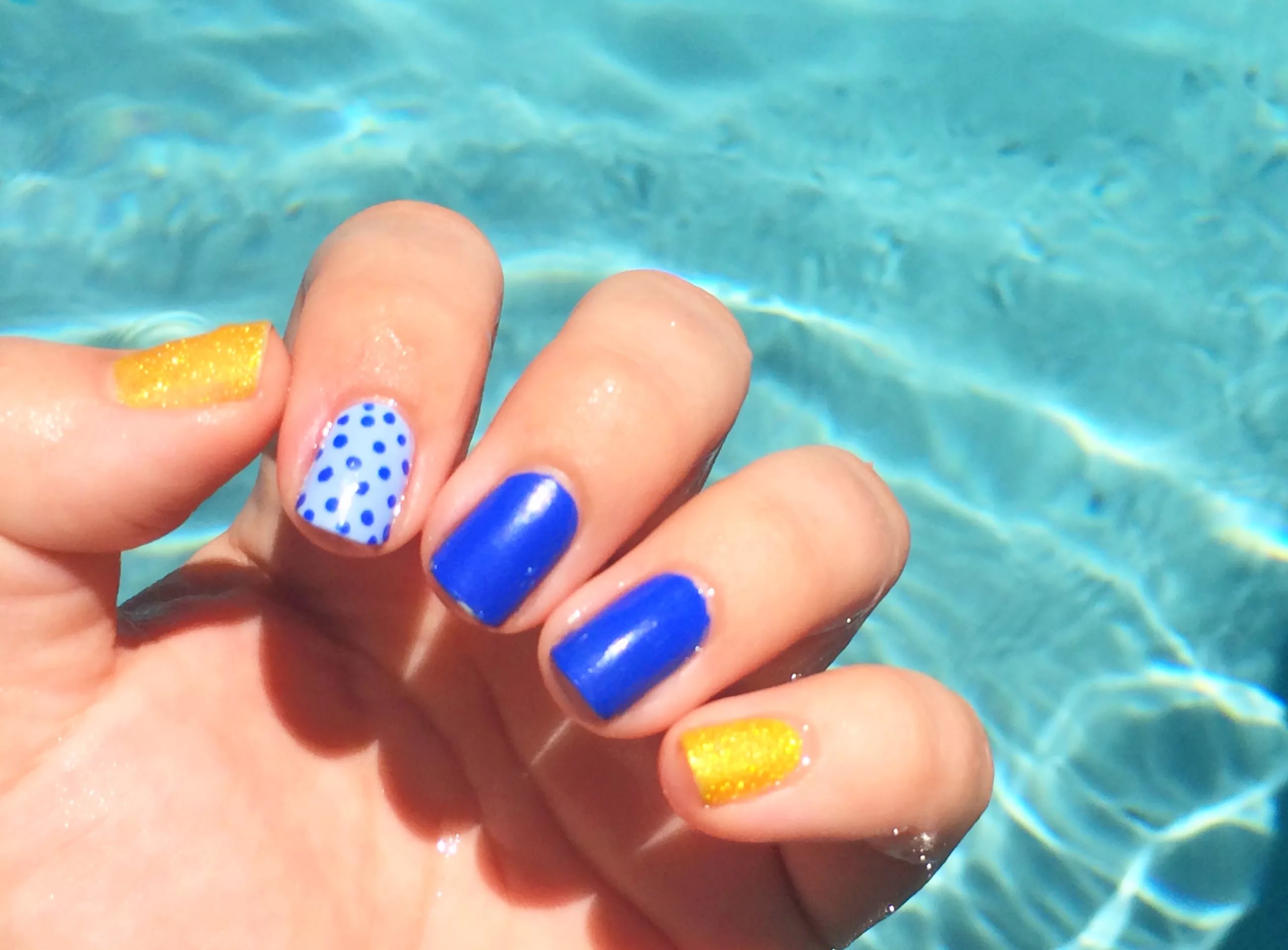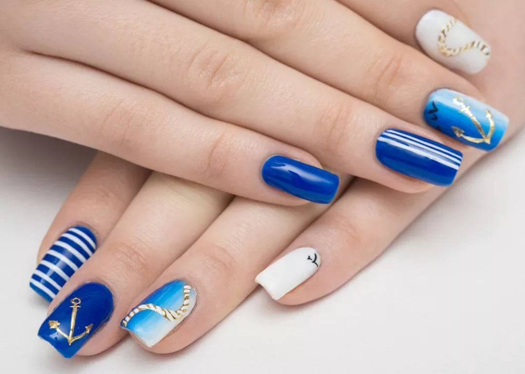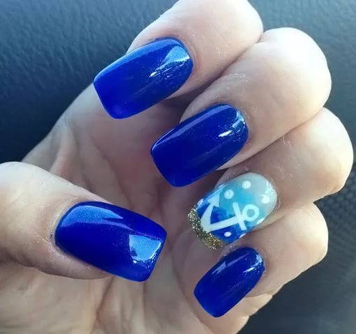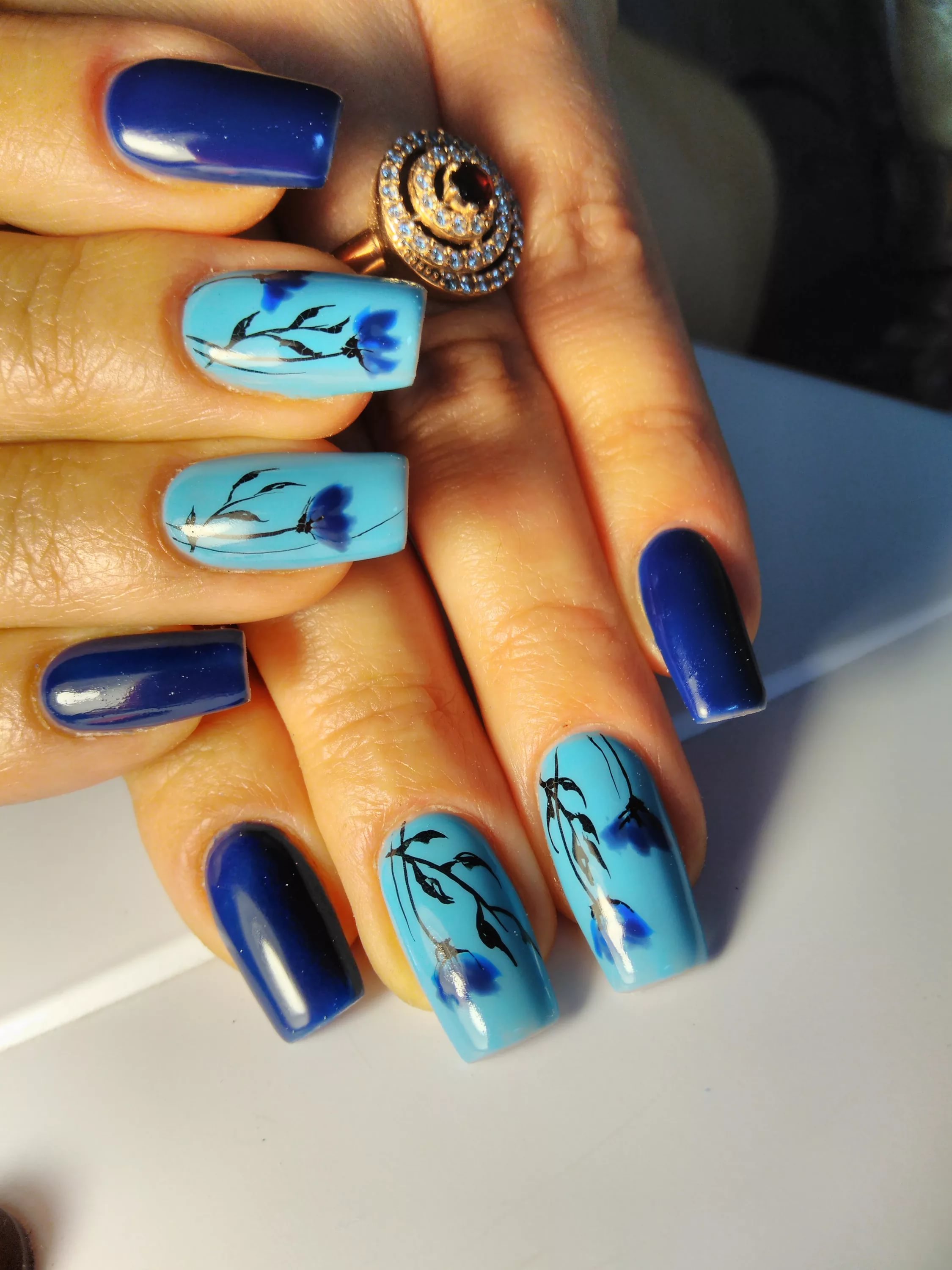 - More bold is the way to design your nails in blue. This shade is quite a contrast, so it cannot but attract attention to itself.