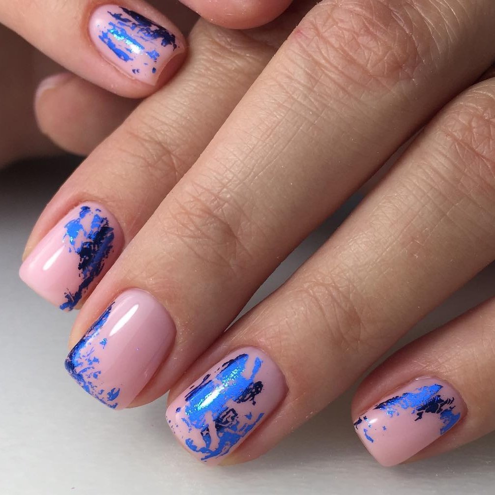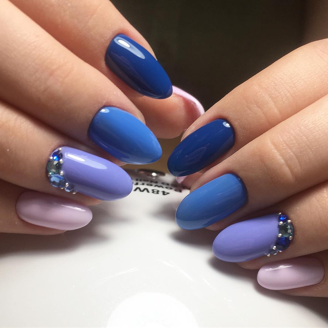 - Blue-blue nails are perfectly combined with various rhinestones or artificial stones that can be glued to your nails. Thus, it is possible to portray not only abstract "pictures", but also, for example, the starry sky.
