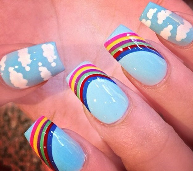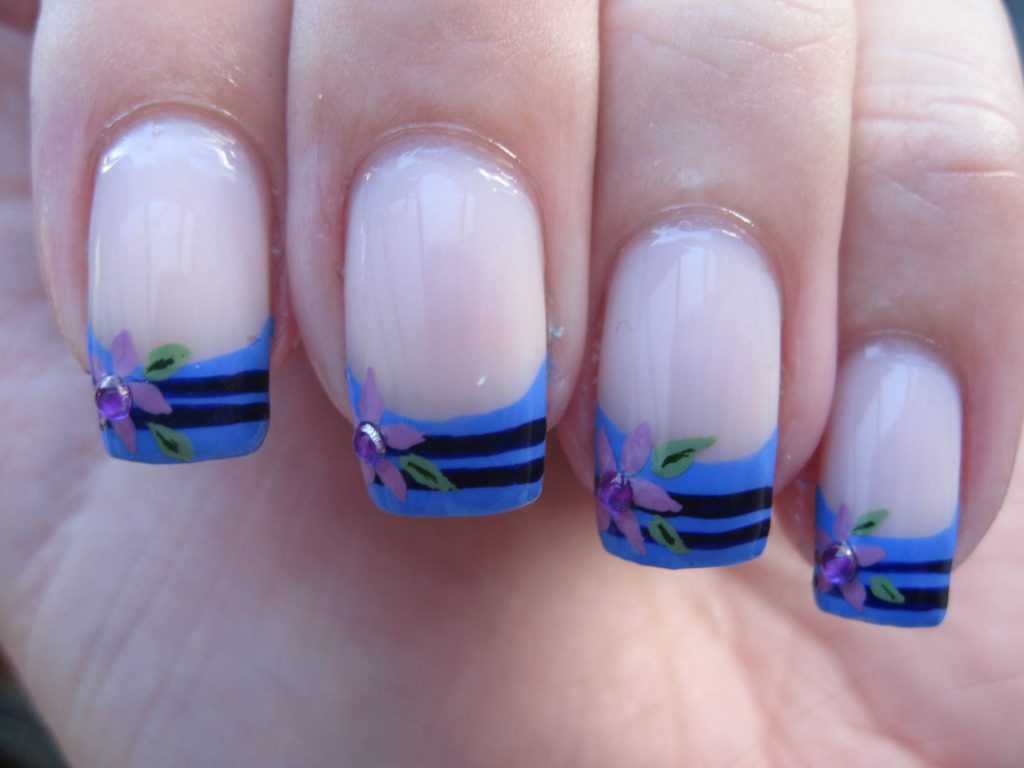 Most masters of nail service share seasonal manicure, in which shades of blue and blue are applied, for spring, summer, winter, autumn. So, for the summer and spring will suit bright, but at the same time gentle combinations of blue and pink flowers. An excellent option would be flower drawings and prints. And you can also portray the cloudy sky or the beautiful sea - there are options for every taste. For winter, nail design using blue and blue colors also fits perfectly. If you add a bit of white to this palette, you can draw snowflakes or other snow patterns that the frost draws on the glass.