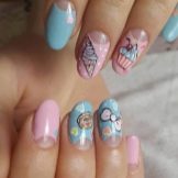 In addition, it is interesting to beat the theme of ice cream. For example, make a manicure with drips of melted cream. It can even be made in different colors, because ice cream is now very different, sometimes even black or green.