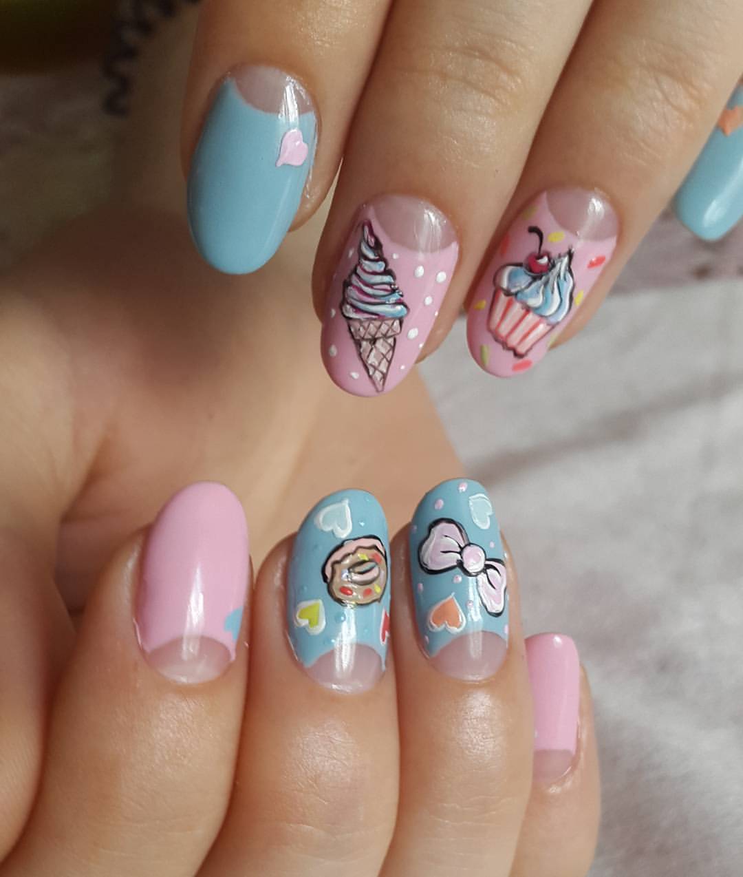 Now not only elegant nail design, but also carefree, fun decorative items are in fashion. Manicure with sweets - one of these trendy topics. Thanks to him, you can see a sweet tooth from afar, and the owner of such a manicure gets the opportunity to plunge into children's dreams and constantly recall the joys of life, looking at her nails.
