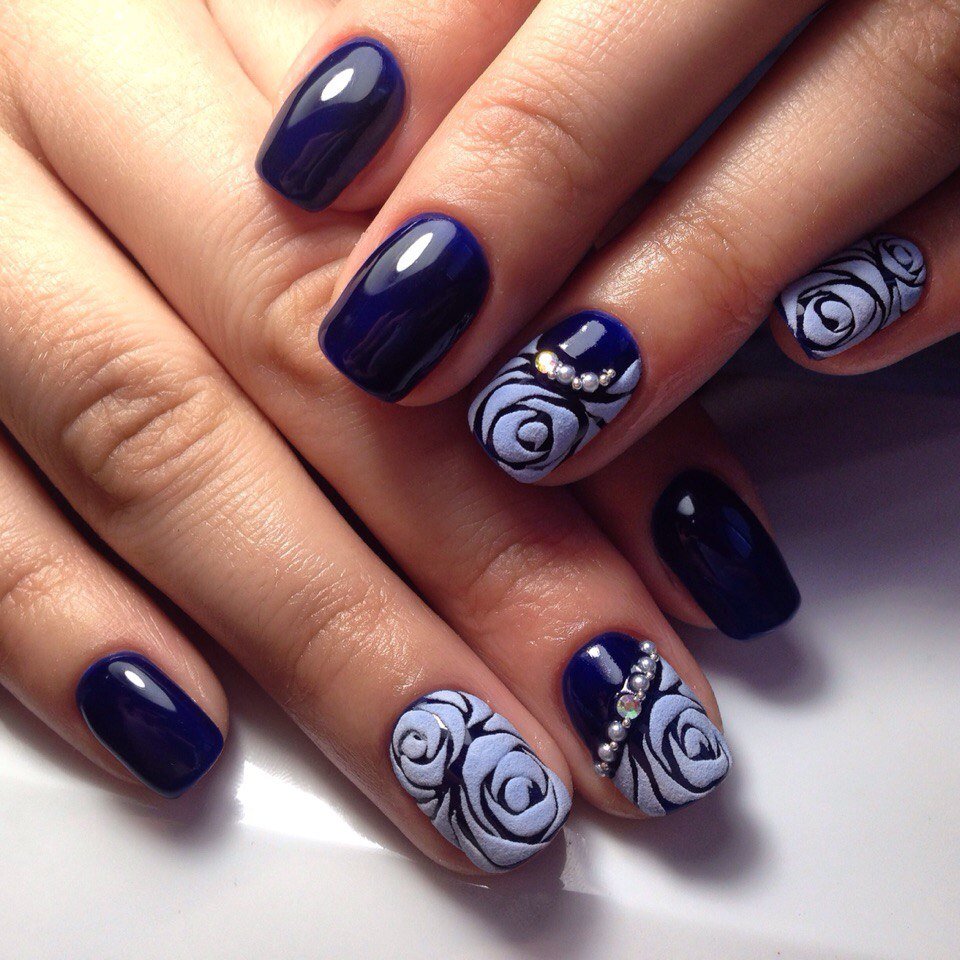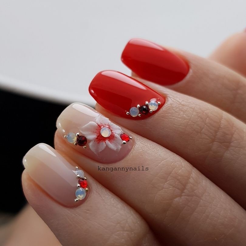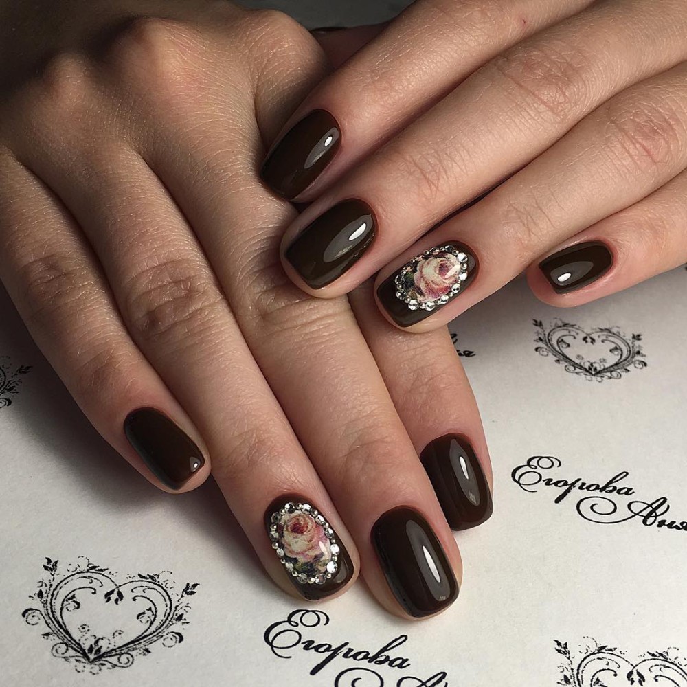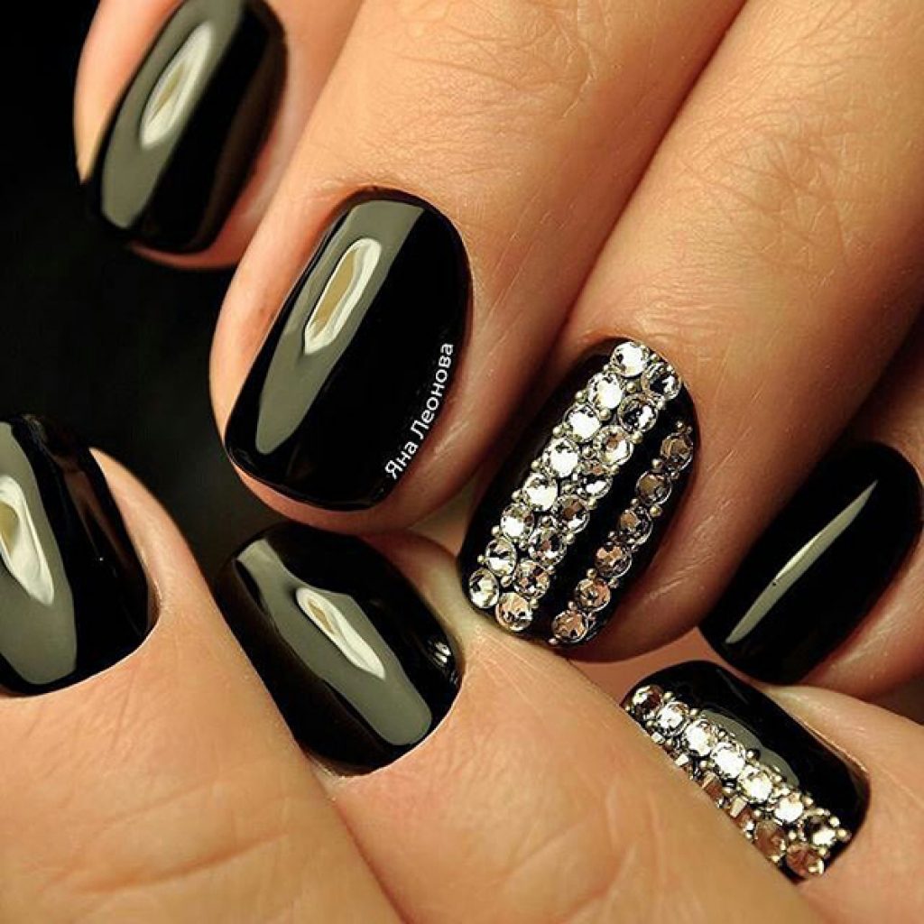 It is not necessary to attach large and voluminous rhinestones to the entire area of the accent nail plate, as it is considered indecent today. Moreover, you should not do this with every nail of a manicure. In addition, it is undesirable to sprinkle with this decor most of the nail, even if it is a flower or a geometric figure.