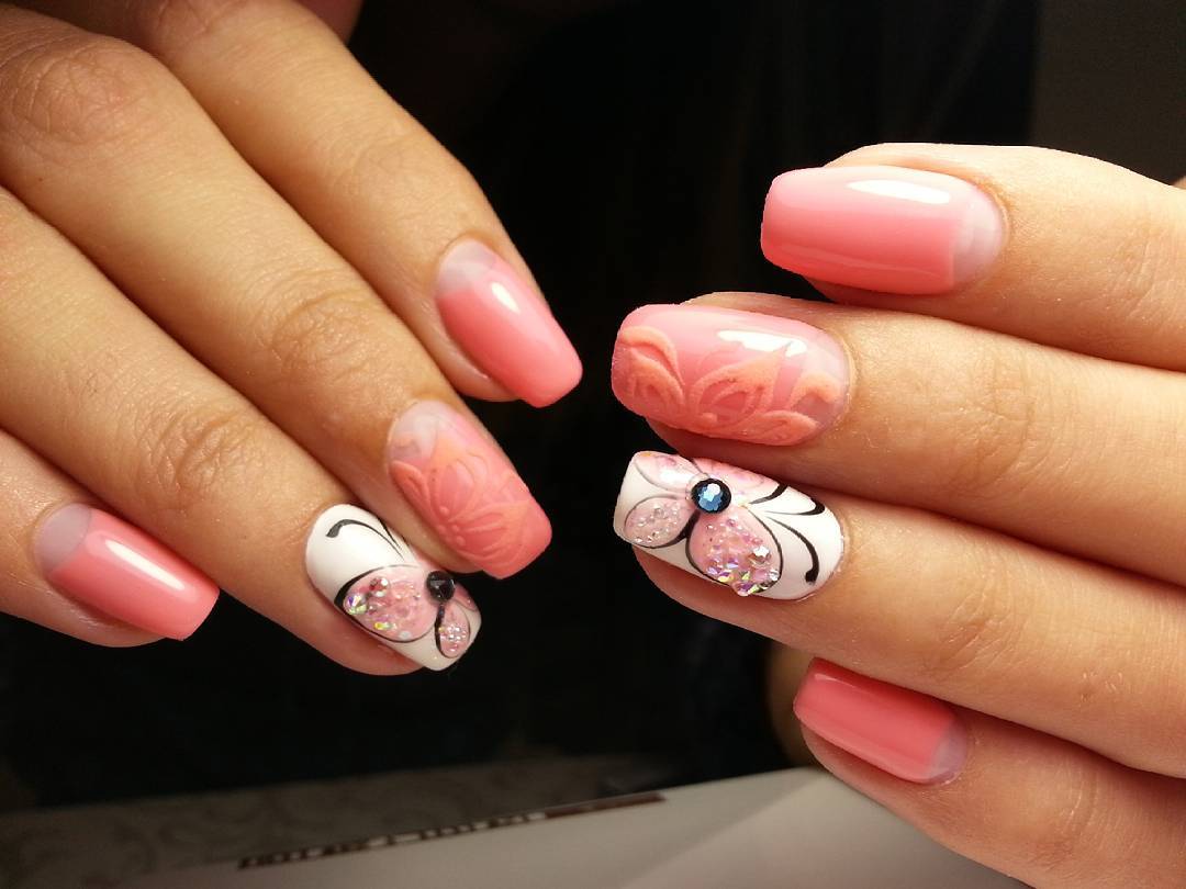So it will be possible to preserve the illusion of lightness and spaciousness, which is especially important for short nails. Even a single element can look better and more expensive placer inlays. This can be done in different ways: