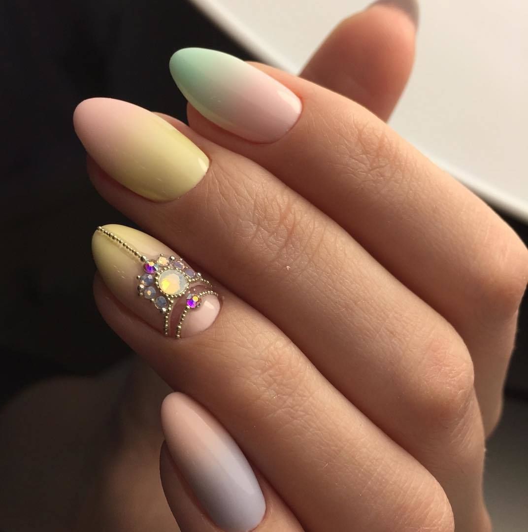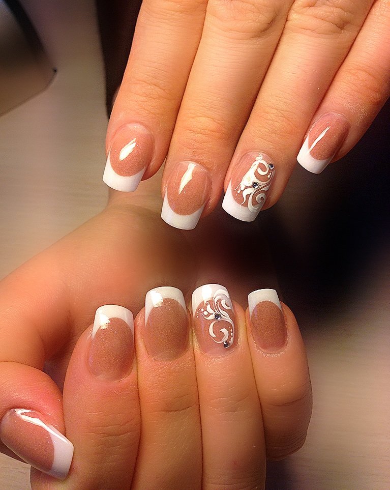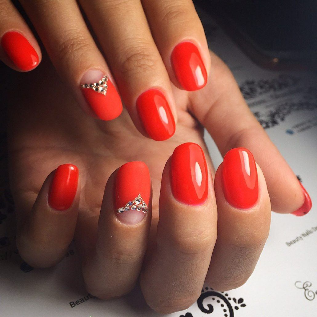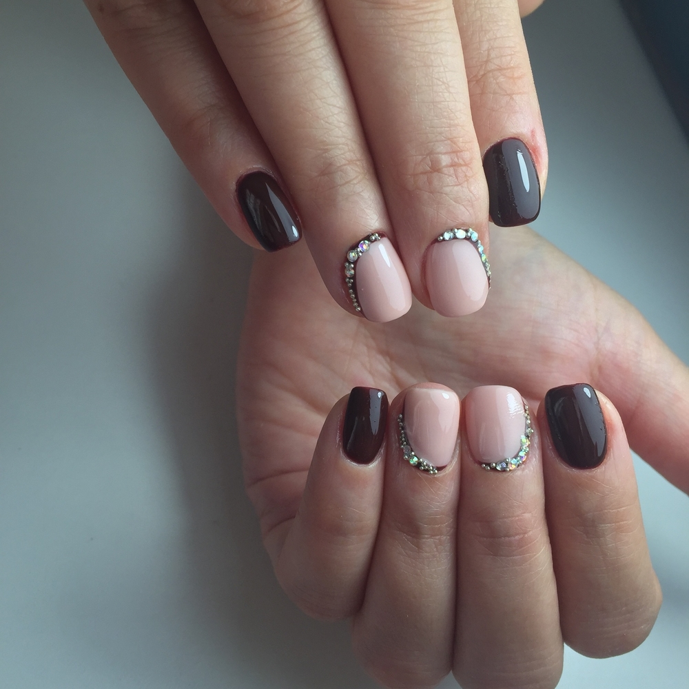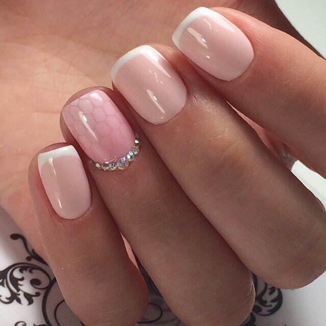 A beautiful manicure is one that does not “scream”, but attracts enthusiastic views of others. This can be done in different ways. For example, it is possible to accent with rhinestones the arch at the base of the nail bed. In this case, it is quite enough to choose classics or a smooth gradient as the main technique.