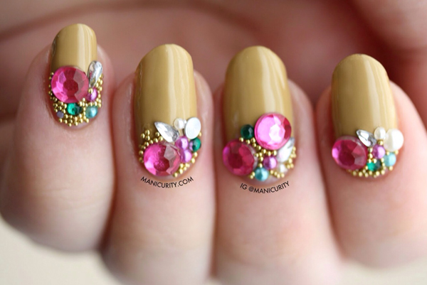 See the video below for ideas on manicure design with rhinestones.